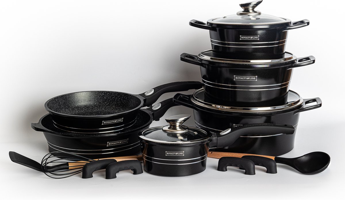 Een zeer uitgebreide set van Royalty Line is een goede eerste stap naar goed en gezond koken. De pannen hebben een hoogwaardige marmercoating en zijn geschikt voor alle warmtebronnen, inclusief inductie en oven. Kortom een pannenset die je niet mag missen in huis!