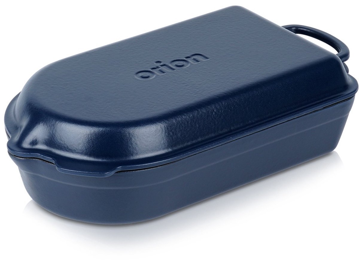 Gietijzeren braadpan 2-in-1 – Ovale braadpan met deksel, die ook dient als aparte ovenschaal. De braadpan is perfect voor het bakken, stoven en roosteren van vlees, groenten en aardappelen. Na het verwijderen van het deksel krijgen we twee aparte schalen: een grotere met afmetingen van 42,5 x 22 x 7,5 cm, de hoogte met deksel is 11,5 cm en een inhoud van 4 l, en het deksel dat fungeert als een kleinere schaal met afmetingen van 43 x 22,5 x 4 cm en een inhoud van 2 l. Braadpan uit de Litina-serie.