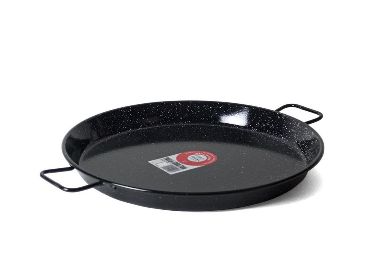 Paella pan 50 cm emaille Echte paella maak je in een echte paella pan! Deze paella pan is favoriet bij vele Spaanse paella chefs. De pan is namelijk makkelijk in gebruik, onderhoudsvriendelijk en geschikt voor vele warmtebronnen. Een echte alleskunner dus!