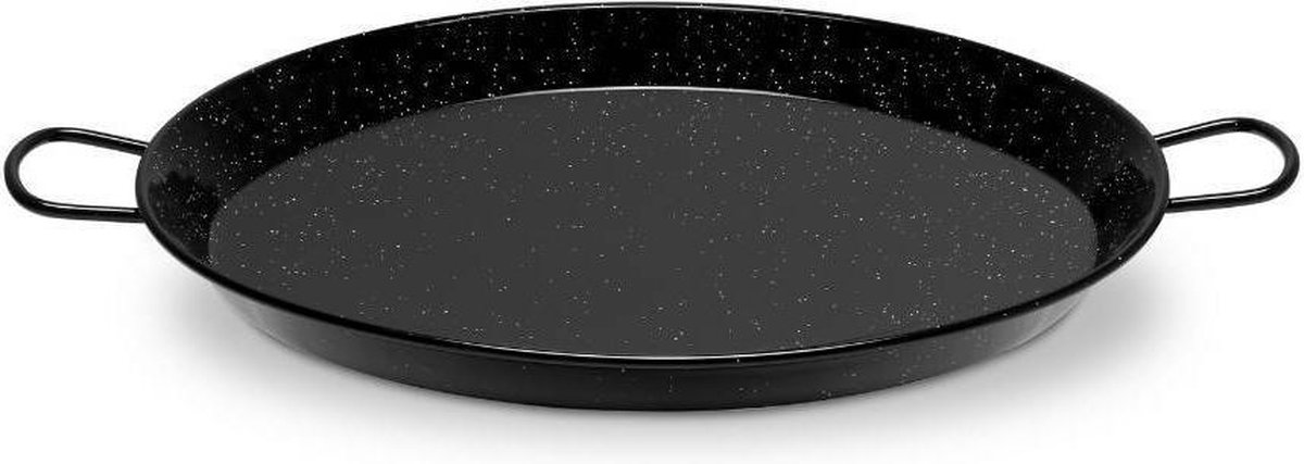 Paella pan 42 cm emaille Echte paella maak je in een echte paella pan! Deze paella pan is favoriet bij vele Spaanse paella chefs. De pan is namelijk makkelijk in gebruik, onderhoudsvriendelijk en geschikt voor vele warmtebronnen. Een echte alleskunner dus!