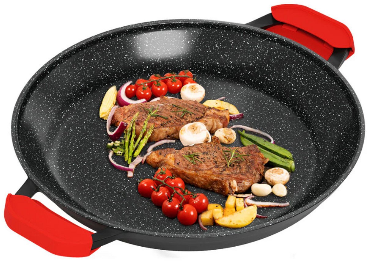Onmisbaar in elke keuken – van dagelijks gebruik tot speciale gelegenheden Of je nu een snelle doordeweekse maaltijd maakt of een uitgebreide paella voor vrienden, deze multifunctionele paella pan is jouw nieuwe favoriet. Met zijn moderne design, hoge gebruiksgemak en brede toepasbaarheid is hij perfect voor elk type kookplaat. Zoek je een grote koekenpan geschikt voor inductie, anti-aanbak pan met handgrepen of een pan voor paella? Dan is dit dé pan die je zoekt!