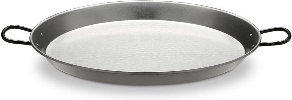 Paella pan 30 cm Deze paella pan is zonder poespas afgewerkt en daarmee uitermate geschikt voor het bereiden van echte authentieke paella!