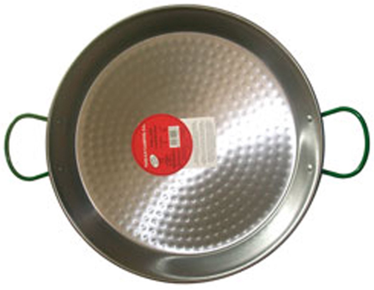 Paella pan 46 cm Deze paella pan is zonder poespas afgewerkt en daarmee uitermate geschikt voor het bereiden van echte authentieke paella.