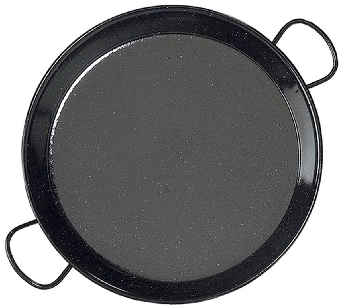 Deze Kookpunt paellapan inductie heeft een diameter van 38cm, is gemaakt van verzwaard geëmailleerd staal en heeft 2 handgrepen.