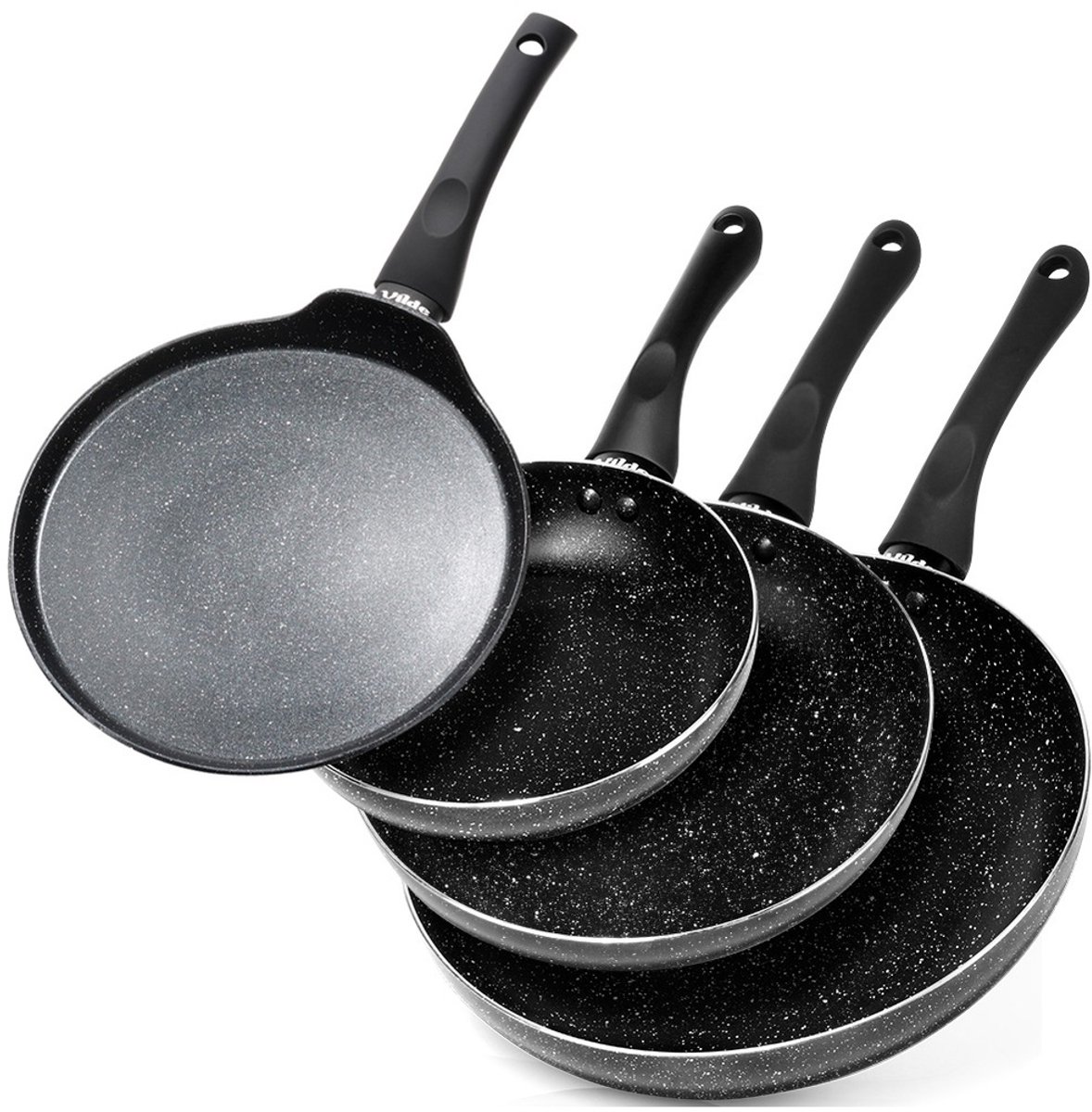 Koekenpan Set Graniet en Pannenkoekenpan BLACK LINE 20 / 24 / 28 cm 4 stuks – Koekenpannen – Braadpannen – Koekenpannenset – Multifunctionele Pan voor Vlees – Groenten
