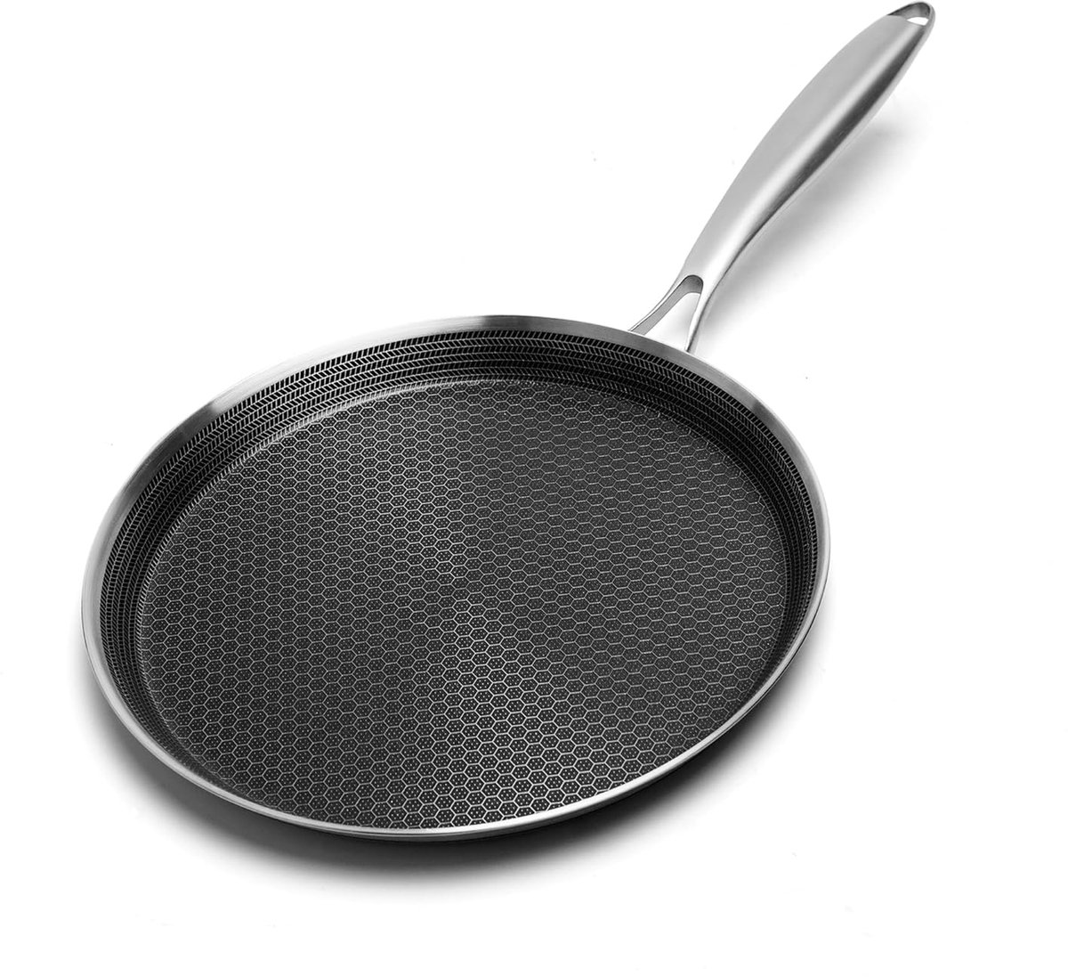 Ontdek de veelzijdigheid van deze roestvrijstalen pannenkoekenpan, ontworpen voor de moderne keuken. Dankzij de honingraatoppervlaktestructuur warmt de pan snel op, waardoor je kooktijd aanzienlijk wordt verkort. Deze pan is perfect voor het bereiden van een scala aan gerechten, van pannenkoeken tot steak.