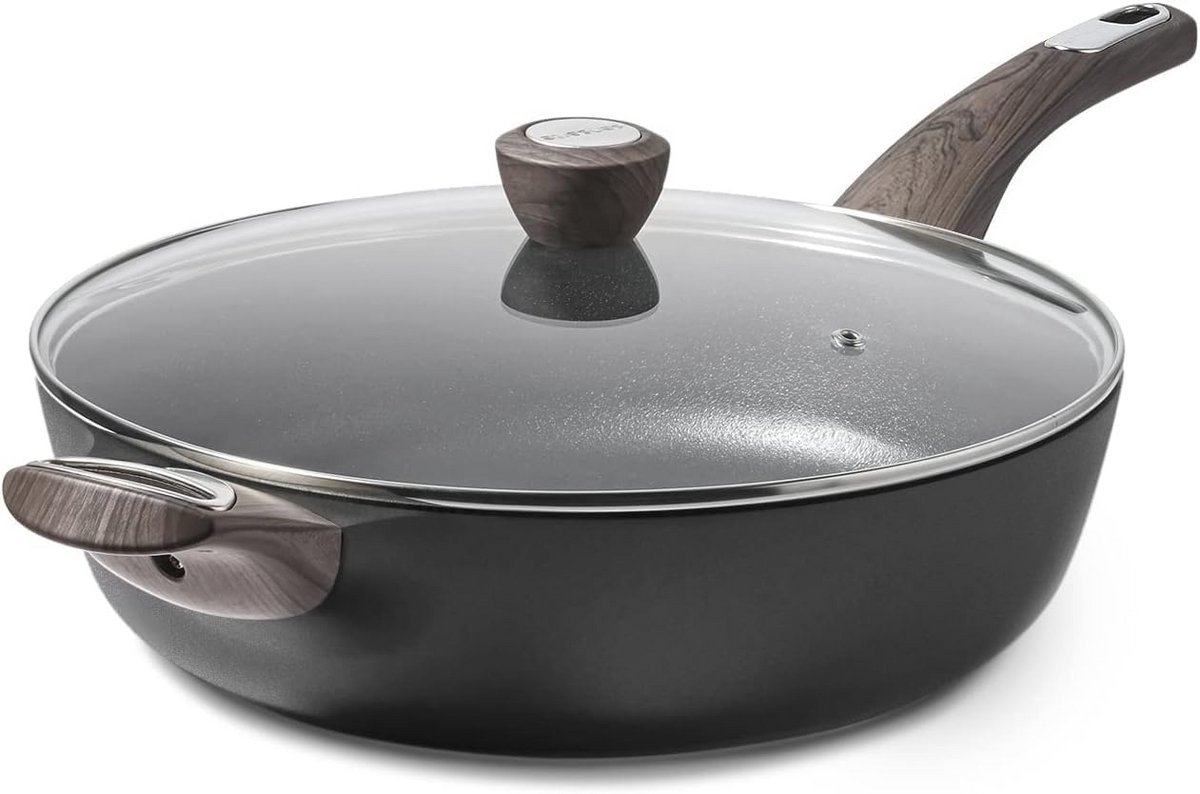 30cm Sauteerpan met Deksel en Antiaanbaklaag – Inductie Steenpan met Ergonomisch Handvat