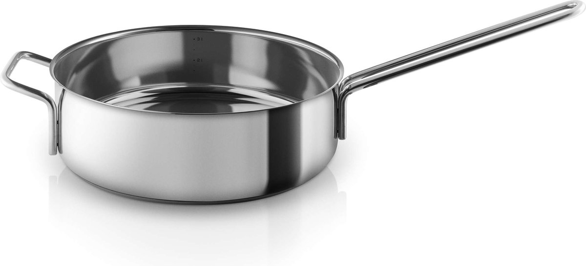 De sauteerpan van Eva Trio is dankzij haar grote kookoppervlak ideaal om snelle stoofschotels te maken. Deze roestvrijstalen sauteerpan heeft een inhoud van 3 L en is geschikt voor alle warmtebronnen. Er vindt een snelle en gelijkmatige warmteverdeling over heel de pan plaats terwijl de handgrepen koel blijven voor een veilige bediening. Na gebruik is de pan eenvoudig te reinigen in de vaatwasser. Pluspunten: Geschikt voor alle warmtebronnen Vaatwasserbestendig Met literaanduiding aan de binnenkant Minpunt: Deksel niet inbegrepen Eva Solo is een wereldwijd bekend Deens merk dat bestaat sinds 1913. Na de eerste grote doorbraak in 1952 met een brood- en vleessnijmachine, volgden er nog veel meer successen. Eva Solo heeft zich sinds die tijd gespecialiseerd in het maken van mooi vormgegeven accessoires en keukenartikelen. Alle artikelen zijn mooi om naar te kijken, maar nog leuker om te gebruiken en te hebben!