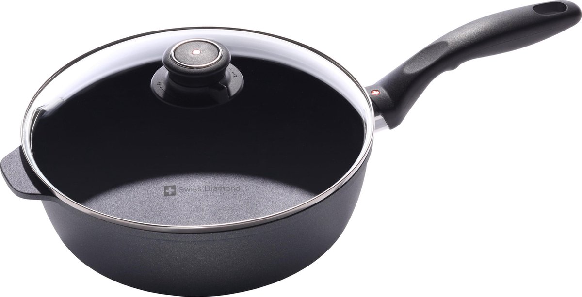 Swiss Diamond® is een hoogwaardig kook- en keukengerei merk dat in 2001 is opgericht. Het merk streeft ernaar aan de behoeften van de consument te voldoen door veilige, hoogwaardige materialen te gebruiken, door het innovatieve ontwerp te benadrukken met traditioneel Europees vakmanschap en door een milieuvriendelijk productieproces te volgen . Het kookgerei is ovenbestendig tot 260 ° C en wordt beschermd met een beperkte levenslange garantie.