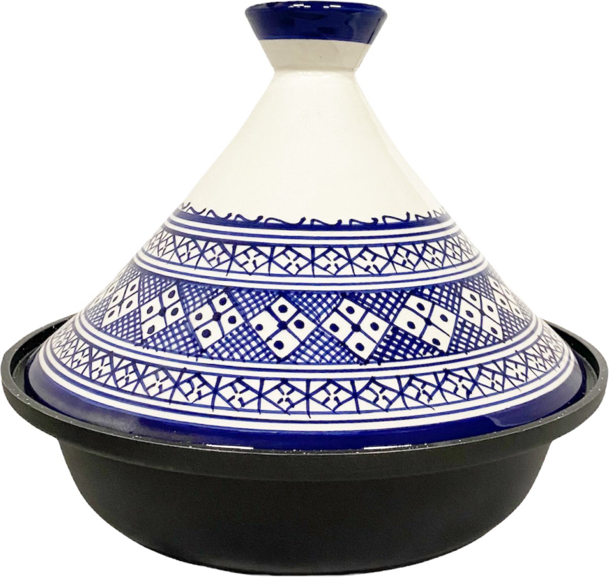 Tajine Fes 30cm - Inductie - Handgemaakt kleurrijke keramiek - wit/blauw - Kookstore.nl