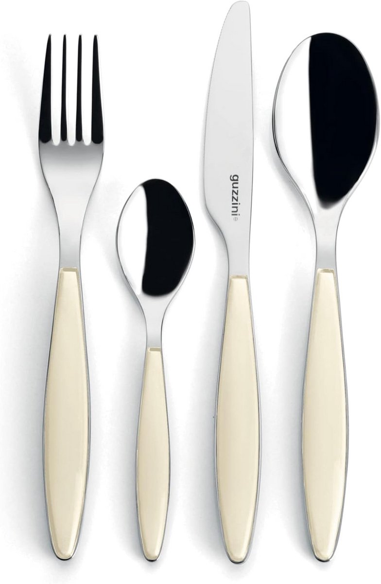 Een stijlvolle en complete 24-delige bestekset in een uniek crème kleur. Deze set geeft uw tafelsetting een zacht en elegant gevoel. Perfect voor dagelijks gebruik of speciale gelegenheden. De set is ontworpen met oog voor zowel esthetiek als functionaliteit.