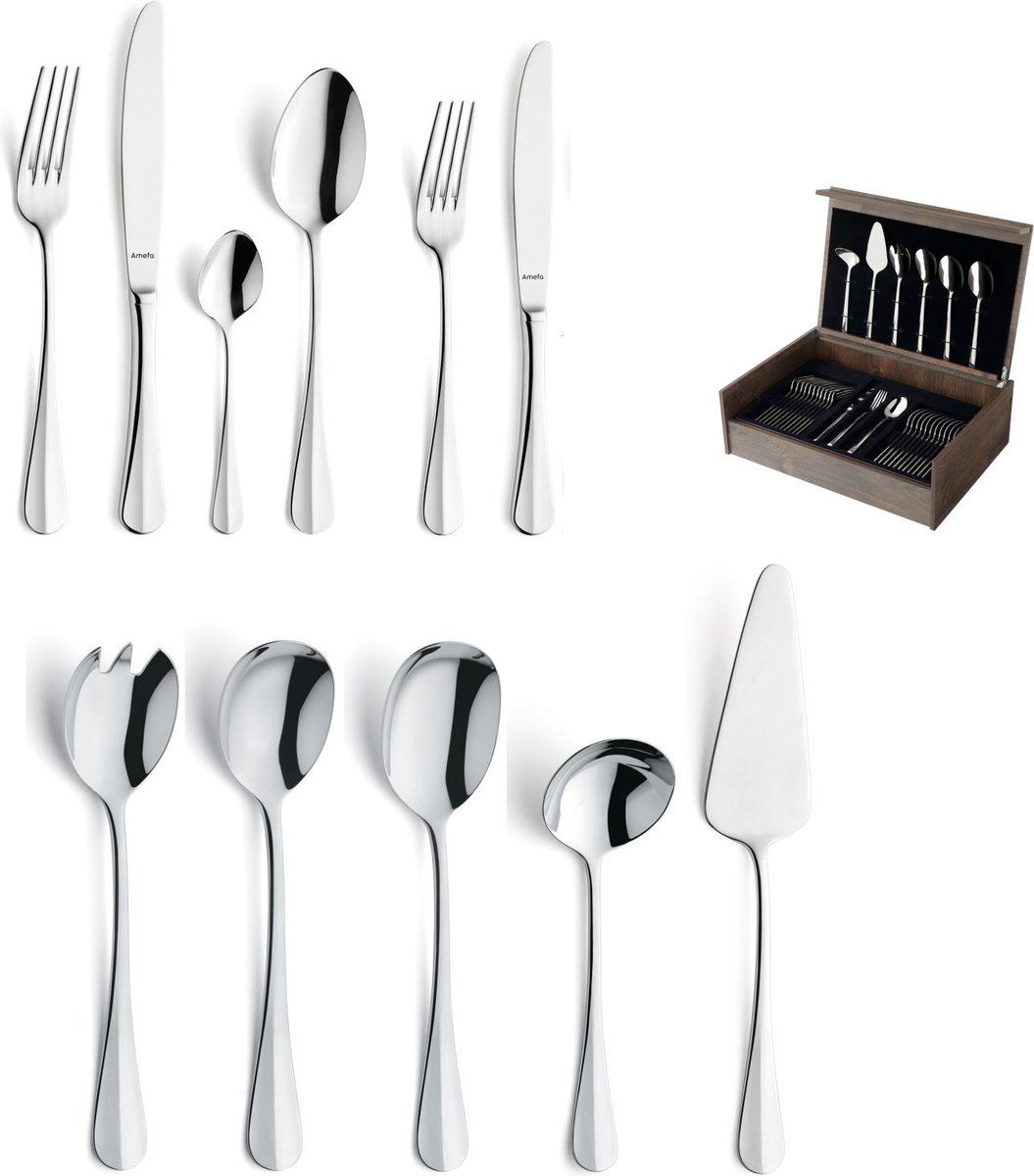 Amefa Baguette – 78-delige bestekset – voor 12 personen – hoogglans – zilverkleurig – in luxe houten kist