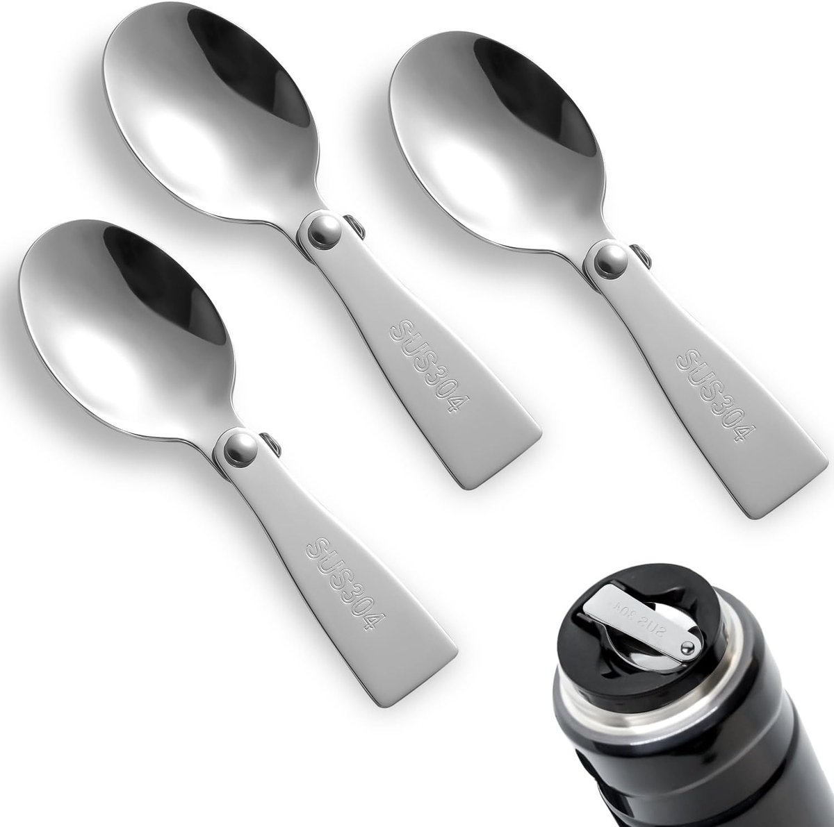 3pcs Vervangingslepel – Opvouwbare Lepel – Draagbare RVS Lepel voor Buitensport en Reizen – Vervangingsonderdelen Geschikt voor Thermos Funtainer 10oz Voedselpot