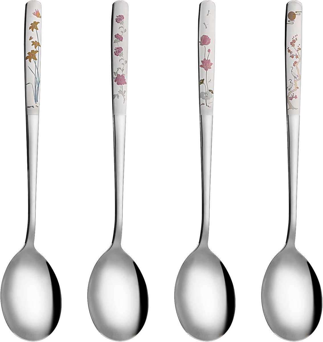 Deze set bevat 4 lange lepels, elk voorzien van een uniek, individueel bloemenpatroon. Zo heeft ieder gezinslid zijn eigen lepel, wat zorgt voor duidelijkheid en hygiëne tijdens het eten.