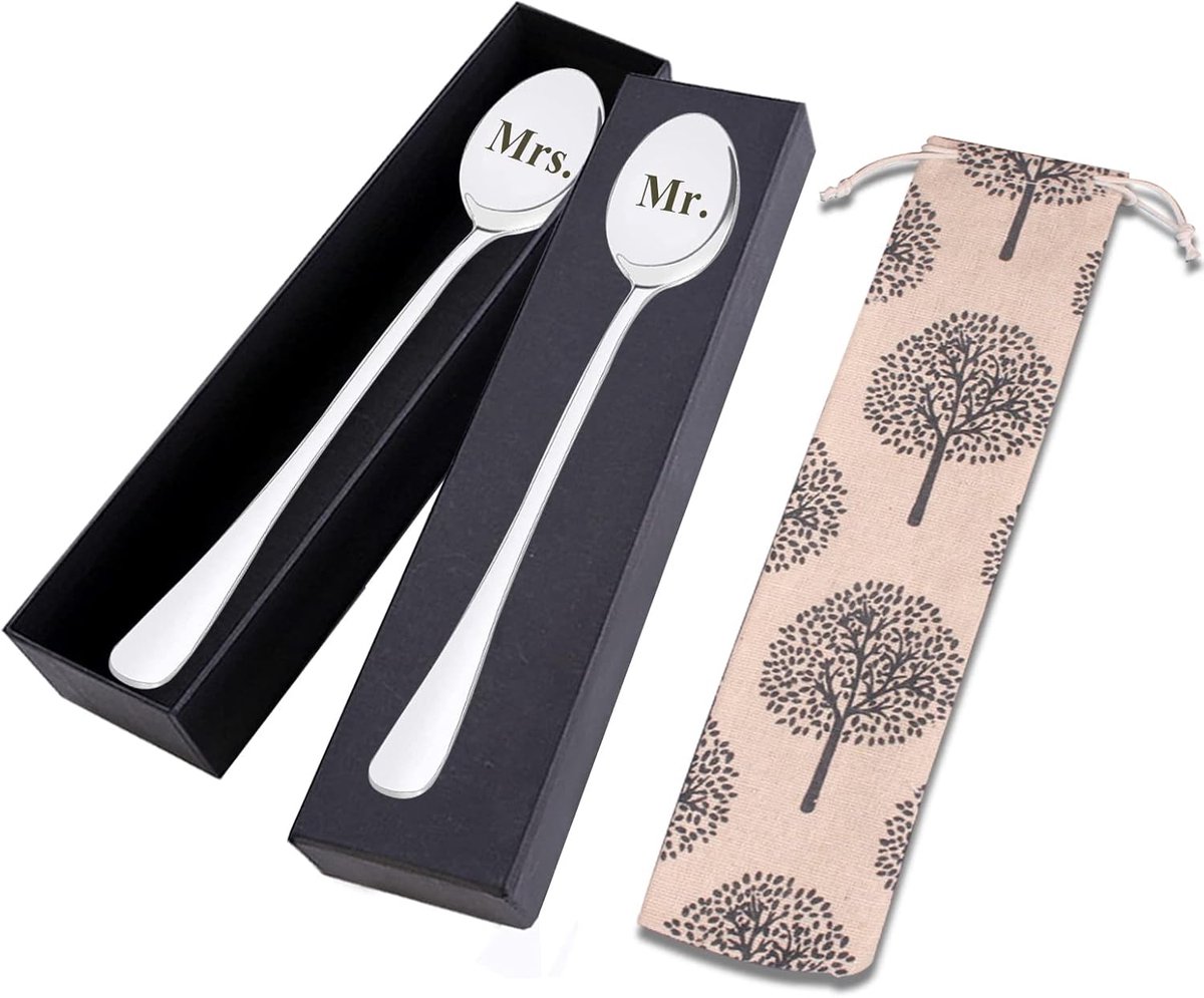 Coffee Lepel met Gravure – Mr. & Mrs. – IJslepel voor Hem en Haar – Gegraveerde RVS Lepels als Cadeaus voor Stellen, Ouders, Grootouders voor Kerstmis en Jubilea – 2