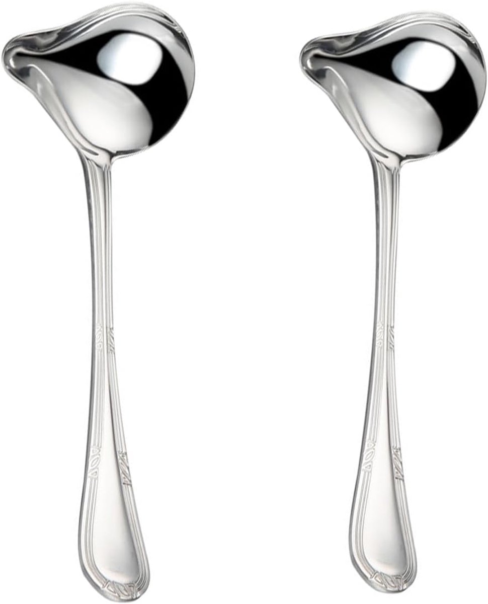 Duck Clapper – RVS – 2pcs Sauce Soup Ladle – Gravy Ladle met Gietlip – Kleine Lepel voor Soep, Saus, Gravy, Dressing (Zilver)