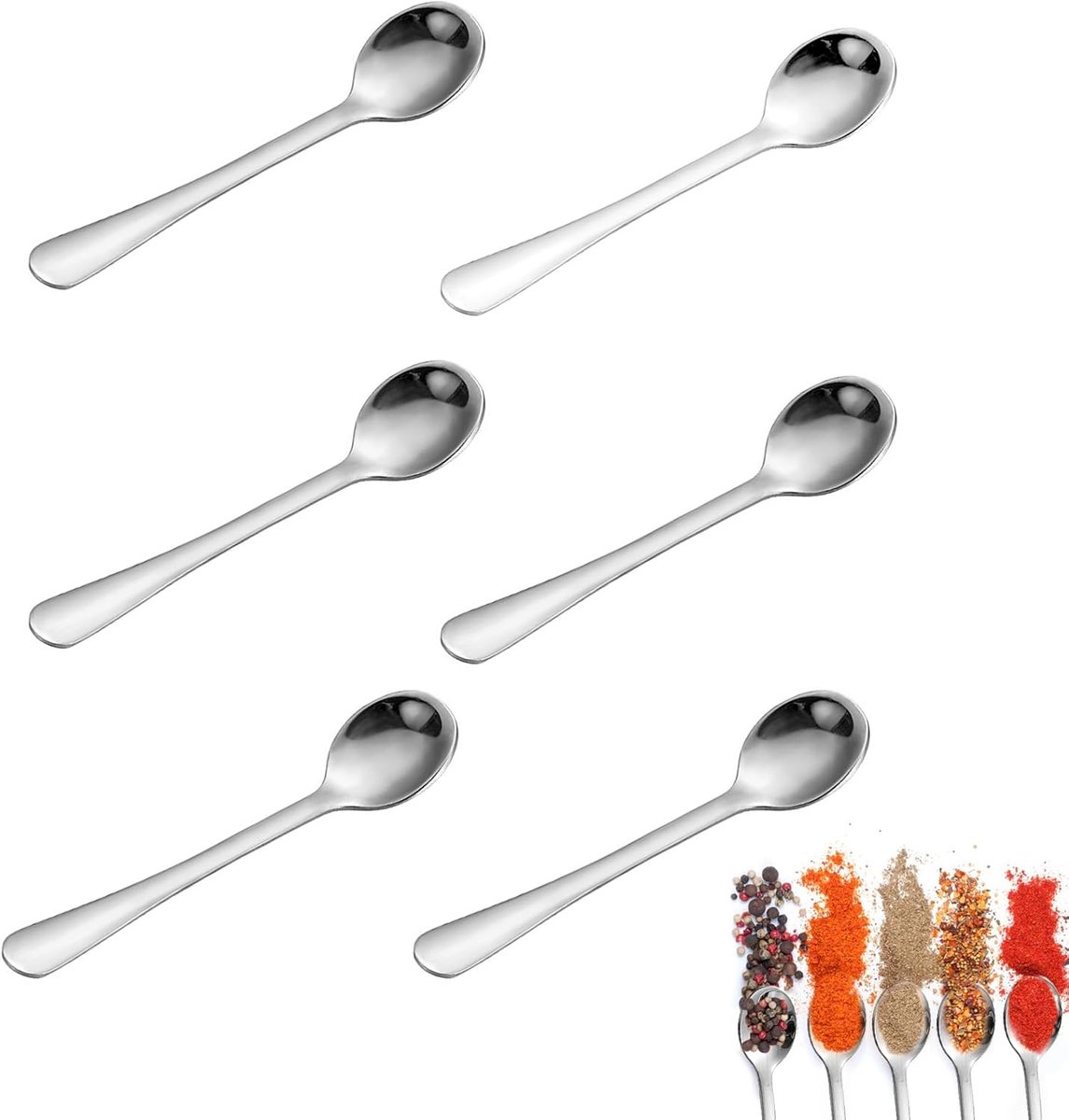 Compleet Pakket: Bij aankoop ontvang je 6 mini lepels van 7.5 cm. Dit maakt ze perfect voor het delen met vrienden of het gebruik in verschillende potten.