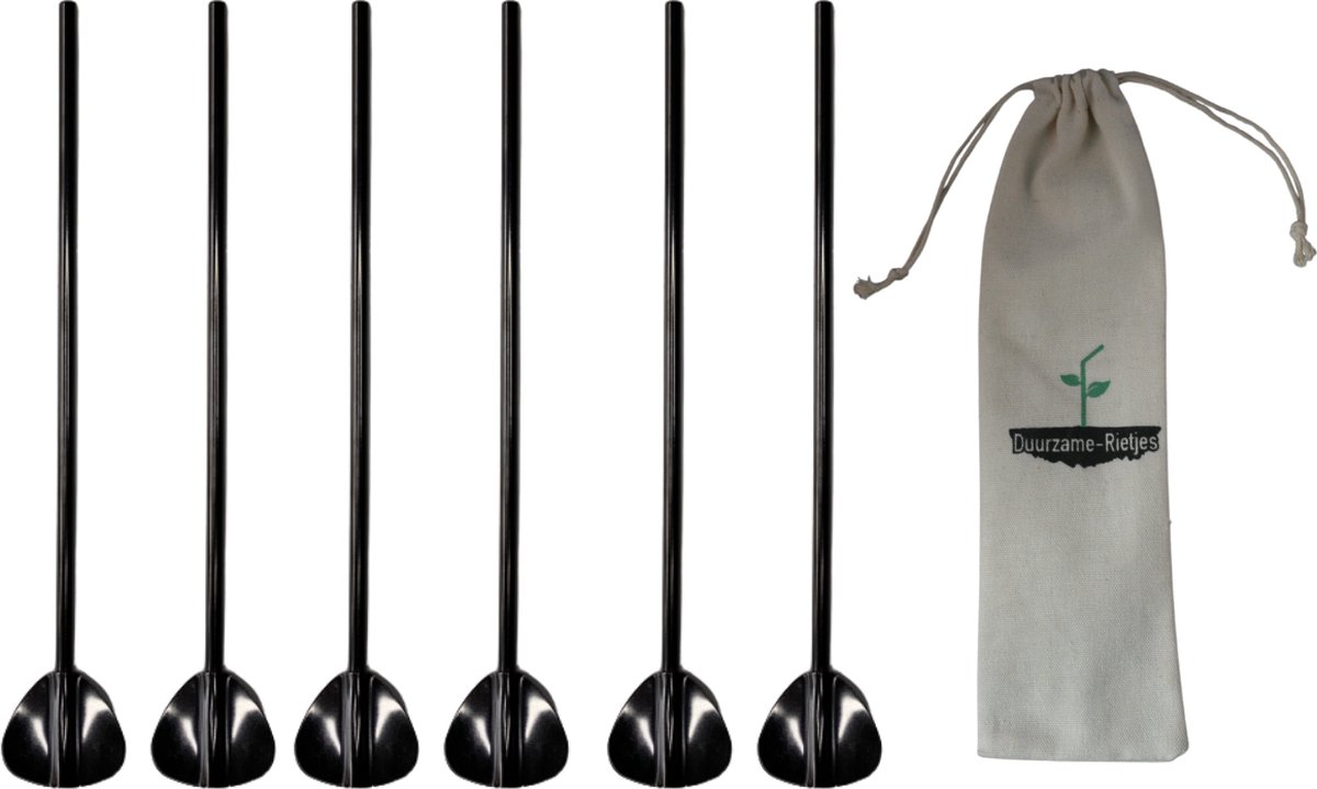 RVS Lepelrietjes Zwart 6 Stuks Lepel Rietjes Lange Lepels 21,5 CM Thee Lepels Longdrink Lepels
