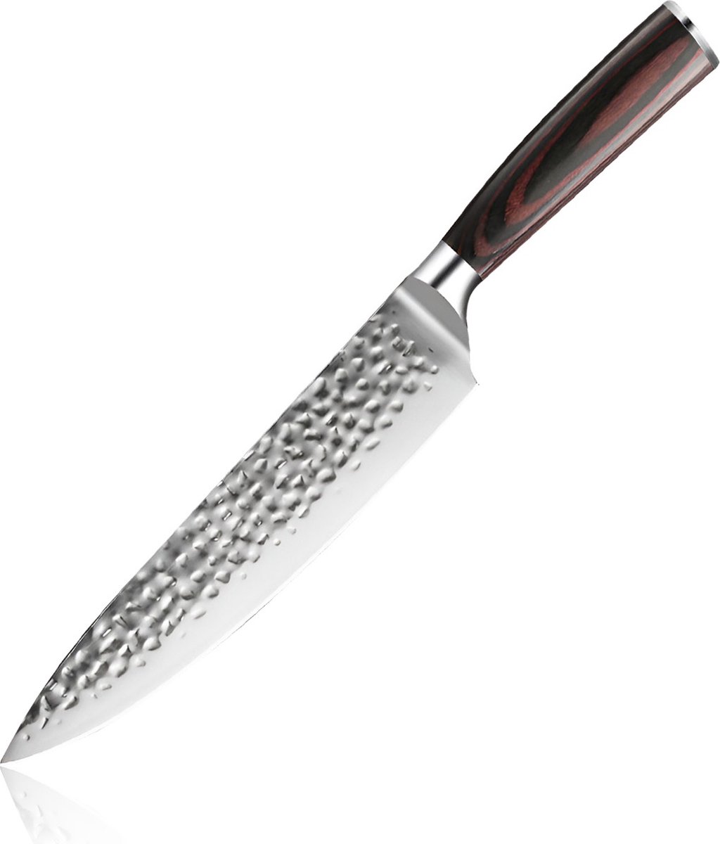 Veelgestelde Vragen Is dit Japans koksmes van 20 cm van hoge kwaliteit? Ja, het koksmes is gemaakt van hoogwaardig RVS staal en heeft een gehamerd design voor extra duurzaamheid.