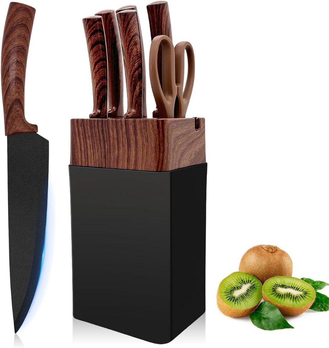 Upgrade je leven in één klik – haal je Messenset met Blok – Messensets met Messenblok – Koksmes – Keukenmessen Set – Super Scherp – Espressobruin nu in huis!