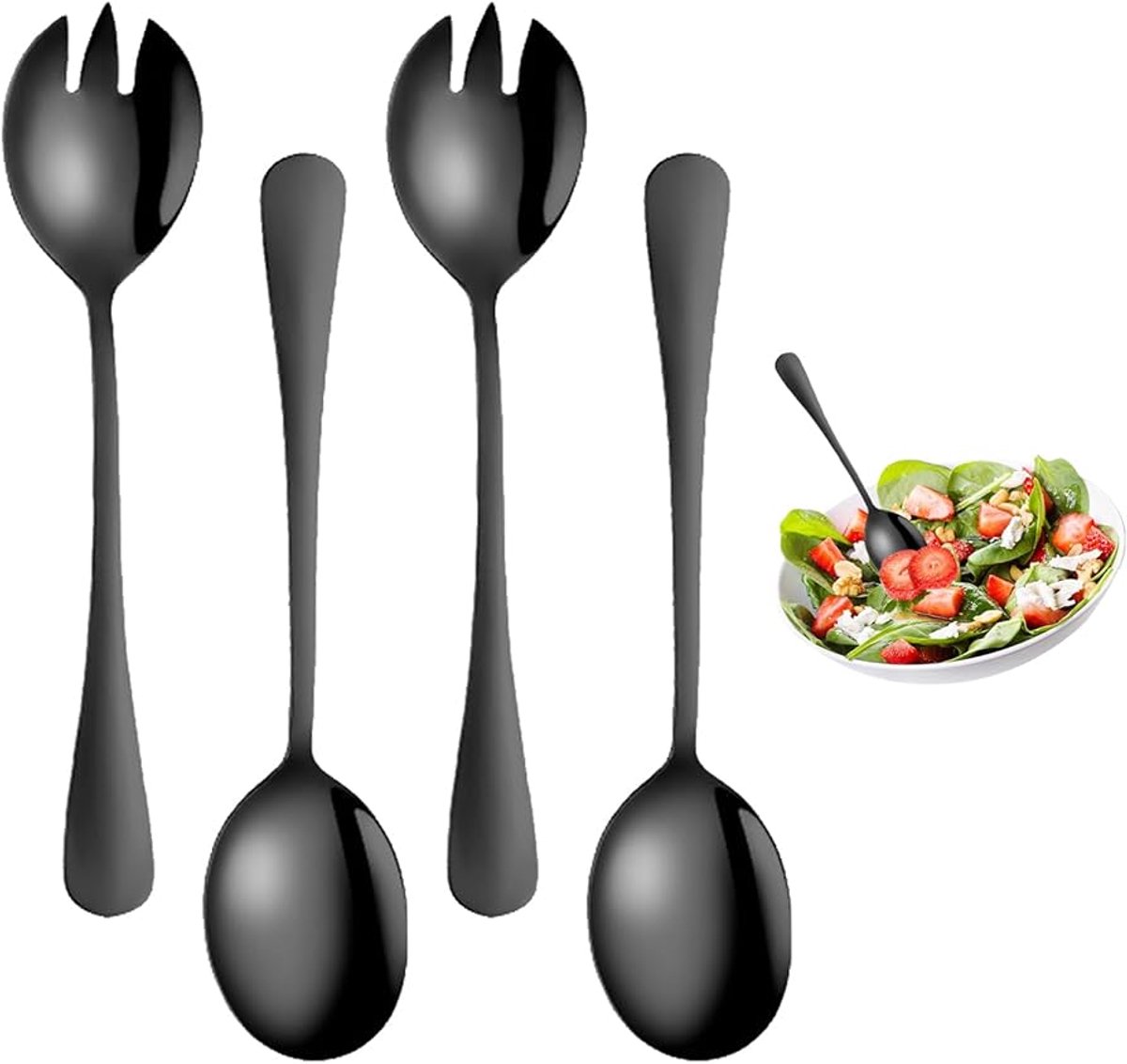 Verhoog uw eetervaring met deze elegante slabestek set van 4 stuks, perfect voor het serveren van salades en andere gerechten. De zwarte titanium coating geeft een moderne uitstraling, terwijl het roestvrij staal zorgt voor duurzaamheid en onderhoudsgemak.