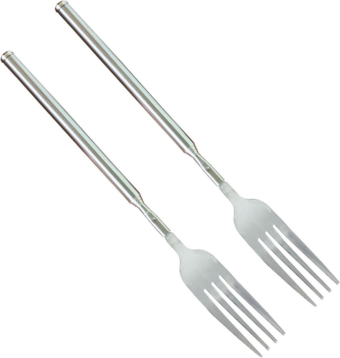 Cosensi – Telescopische Vorken RVS, Uitschuifbare Verlengde Diner Vork 22-64cm, Bestek Lange Handgreep BBQ, Toasten, Fruit – Set van 2