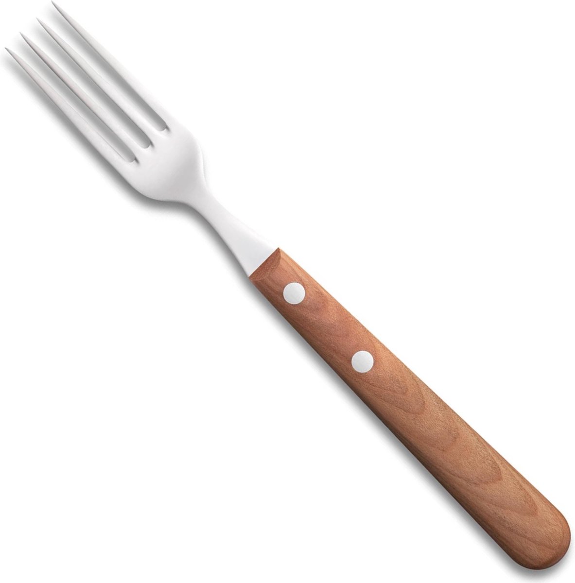 Natuurlijk kersenhouten handvat Het handvat van de dinervork is vervaardigd uit gestoomd kersenhout, dat een warme en natuurlijke uitstraling geeft. Het hout, afkomstig uit duurzame bronnen in Duitsland en Oostenrijk, is zorgvuldig gekozen om een comfortabele grip te bieden. De twee aluminium klinknagels zorgen voor een stevige bevestiging van het handvat, waardoor de vork perfect in balans is en comfortabel in de hand ligt. Dit maakt het gebruik van de vork niet alleen aangenaam, maar ook bijzonder stijlvol.