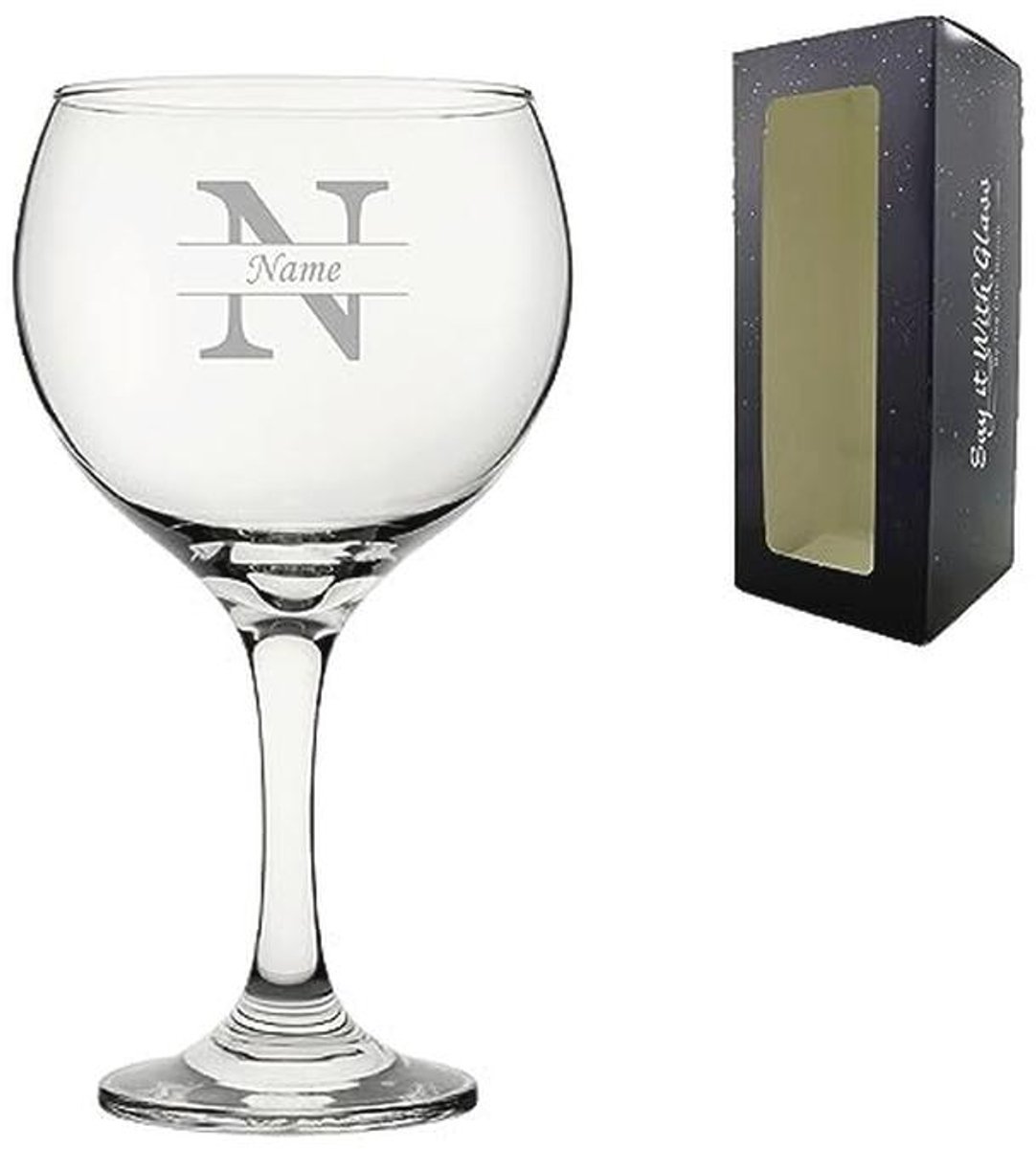 Gepersonaliseerde gegraveerde gin cocktailglas met naam en initiaal als cadeau voor vrouwen