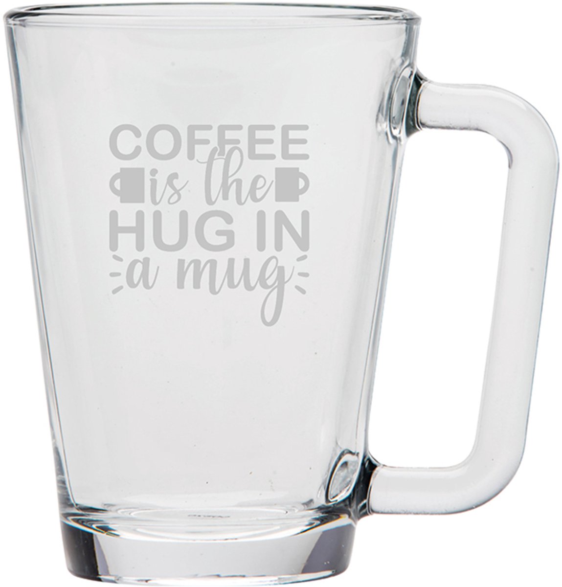 Gegraveerde Koffieglas 26cl Coffee is the hug in a mug