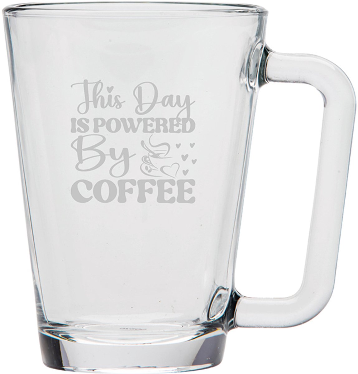 Gegraveerde Koffieglas 26cl This day is powered by coffee