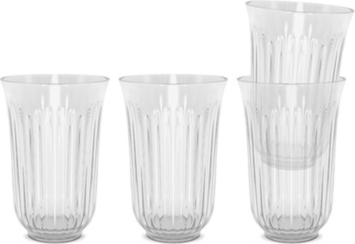 Het originele Lyngby koffieglas 42 cl. geeft uw drankenservice een bijzonder stijlvolle uitstraling. Met zijn elegante geribbelde ontwerp past het koffieglas bij elke gelegenheid en verfraait het elke eet-, bank- en keukentafel.