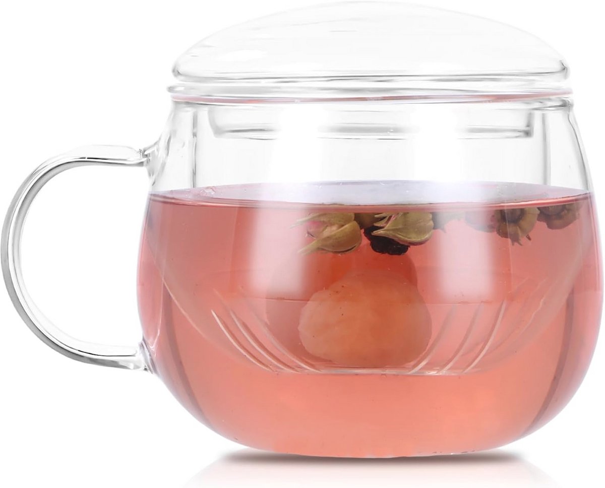 Hittebestendig Theeglas met Deksel en Zeef – 350 ml All-in-One Theekop