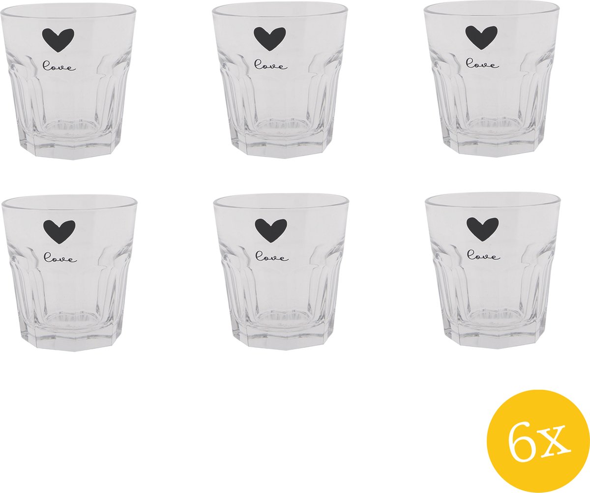 Clayre & Eef Waterglas set van 6 stuks 180 ml Glas Hart Love Drinkbeker