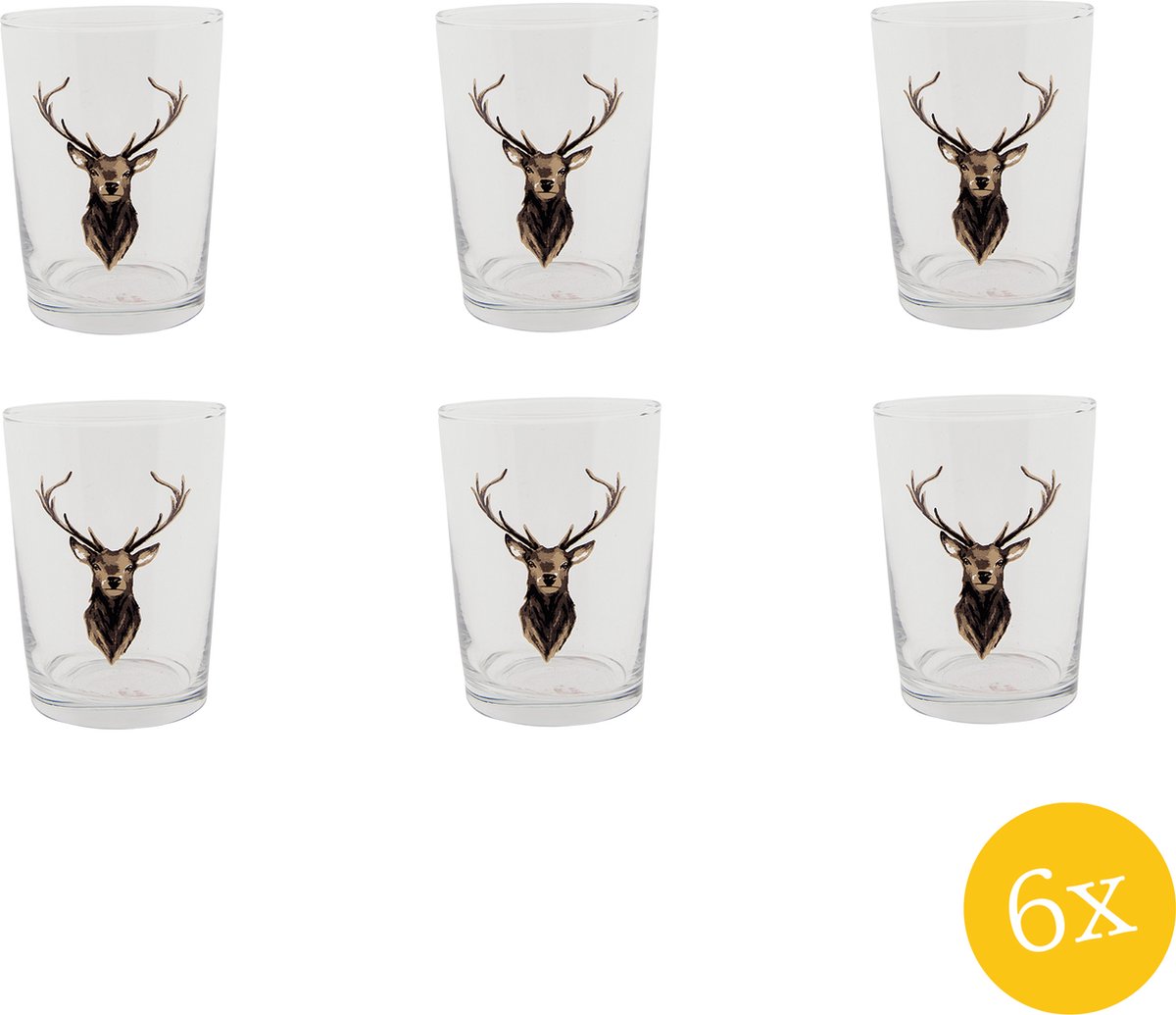 Clayre & Eef Waterglas set van 6 stuks 400 ml Bruin Glas Rendier Drinkbeker