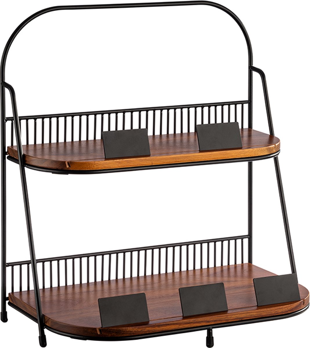 De APS-Germany® 2-delige etagère met 8 beschrijfbare labels. Voorzien van 2 afneembare plateau’s van acacia hout.