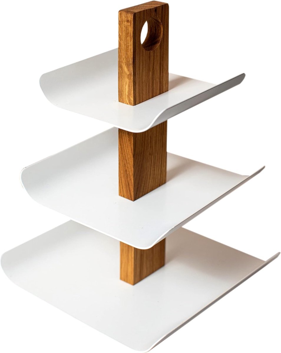 Stijlvol en praktisch design: onze etagère met drie verdiepingen biedt je een stijlvolle manier om snacks, desserts of andere kleine lekkernijen te serveren en te presenteren. De niveaus bestaan uit robuust en duurzaam materiaal, dat ook bij regelmatig gebruik bestand is.