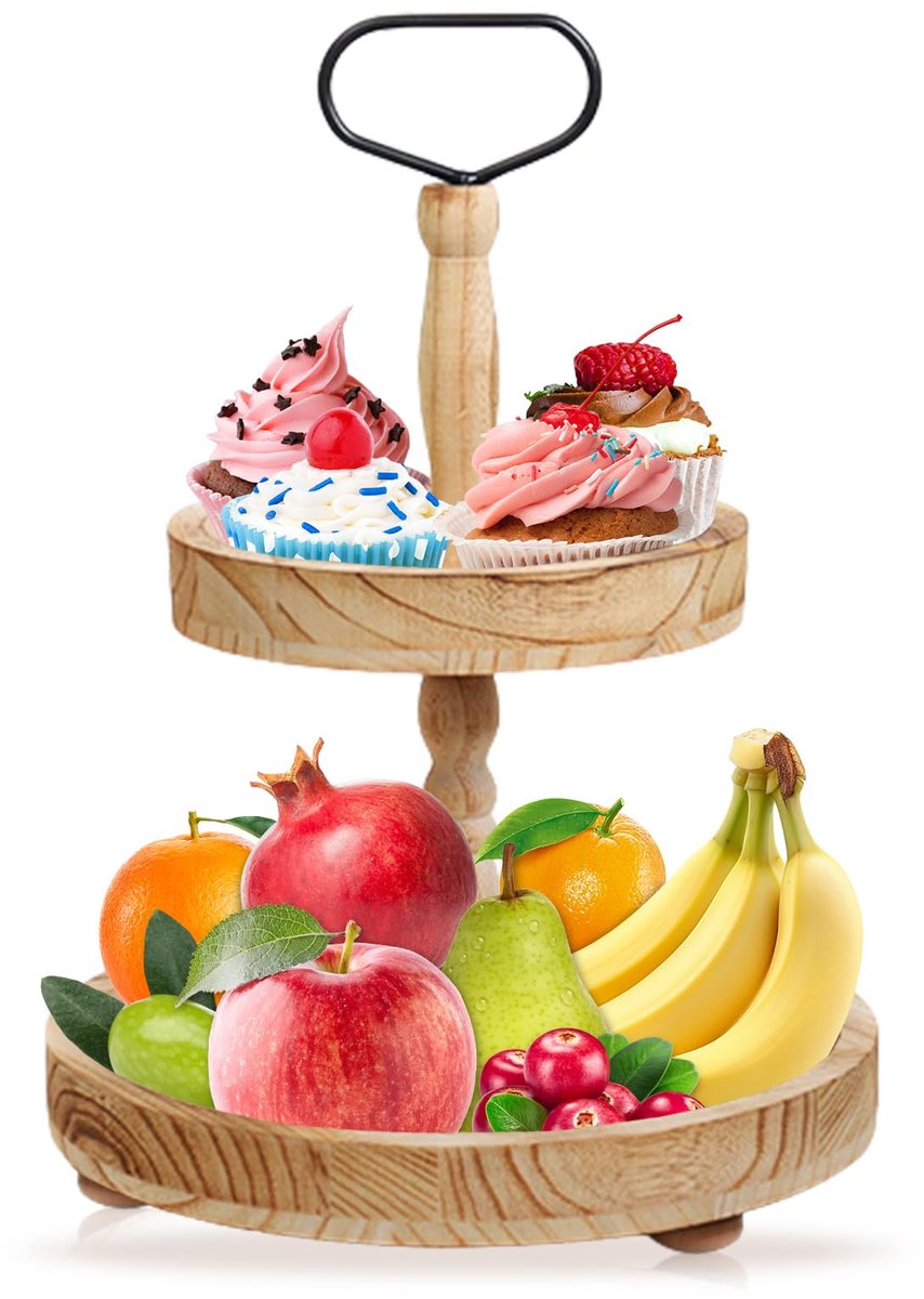 Ibenzoa® Houten Etagère met Twee Lagen voor Taart en Cupcake Presentatie in Vintage Stijl