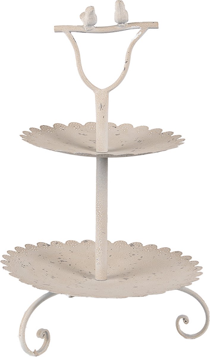 Clayre & Eef Etagère 2 laags Ø 32×51 cm Beige Metaal Vogels