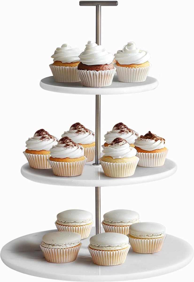 Marmeren 3-Laags Etagère Waarom kiezen voor onze marmeren etagère? Deze luxe marmeren etagère voegt een vleugje elegantie toe aan elke tafel of evenement. Perfect voor het presenteren van cupcakes, kaas, sushi en andere lekkere snacks. Met hoogwaardige materialen en een stijlvol design is onze etagère een must-have voor elke gelegenheid.