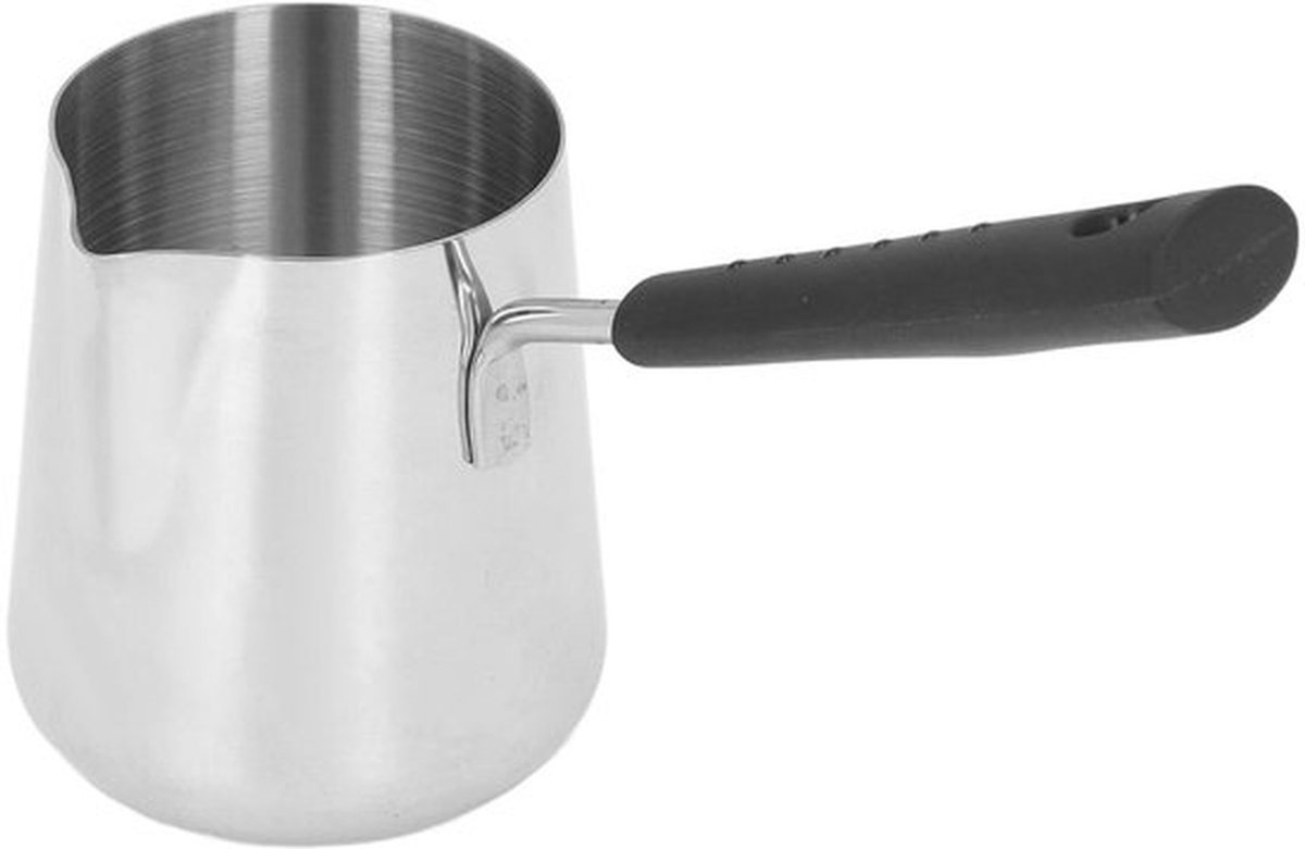 KARZO – Koffiepot, 350ml 304 RVS Mini Turkse Verwarmer Koffiepot met Tuit, 9 X 8,5 X 7,5 cm Heet Chocolade Kruik voor Boter/Melk/Thee/Ahornsiroop/Saus Verwarming