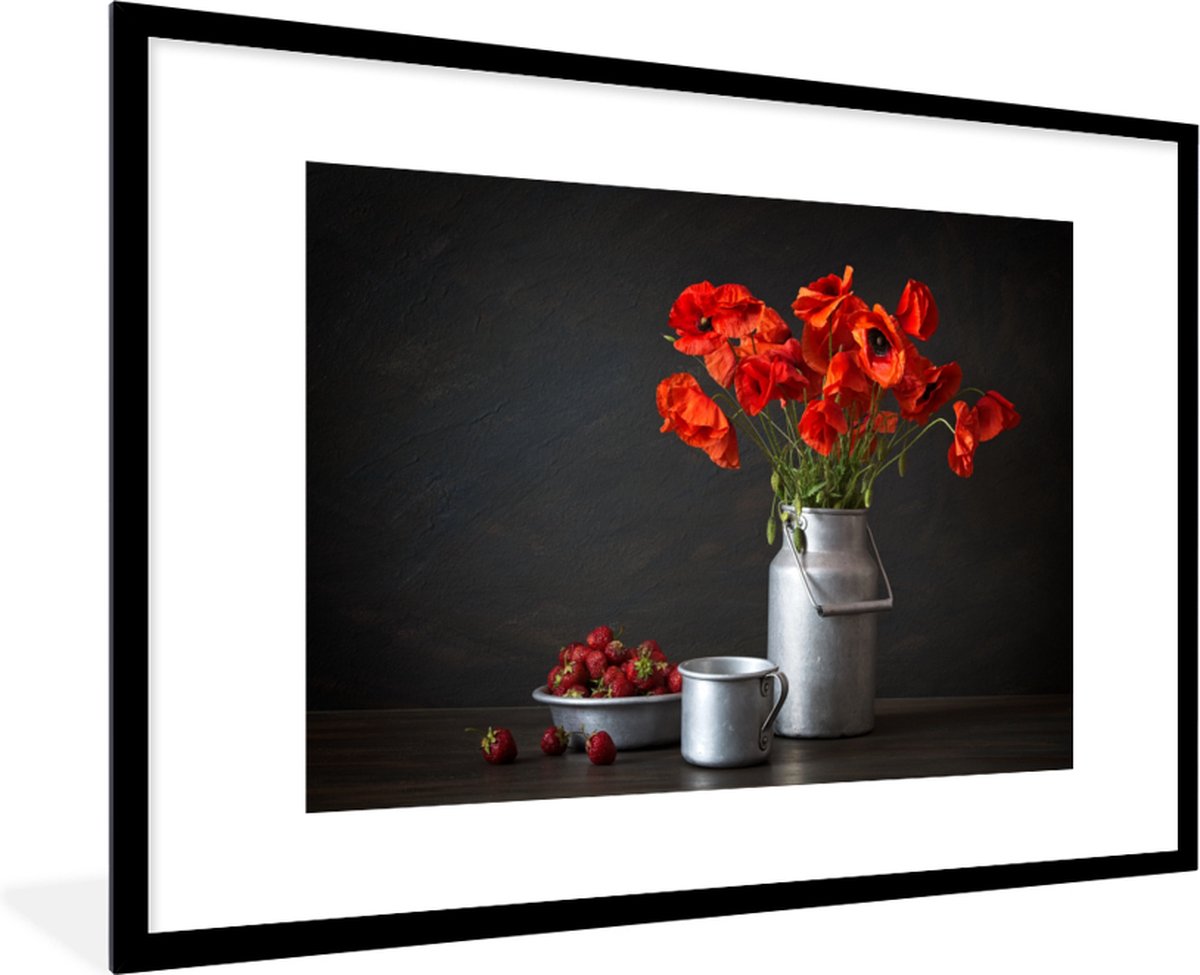 Fotolijst incl. Poster – Stilleven – Klaprozen – Melkkan – 120×80 cm – Posterlijst