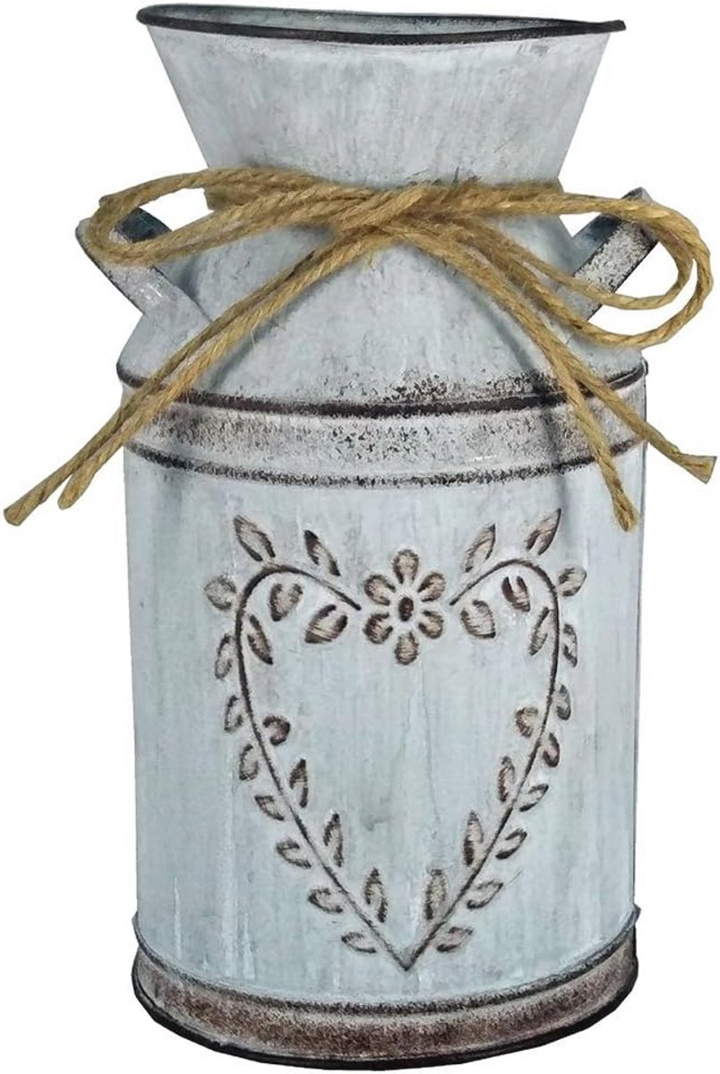 Deze vintage bloemenvaas in rustieke melkkanstijl is perfect voor het decoreren van je huis en tuin. Met een uniek hart- en touwontwerp biedt deze vaas een landelijke uitstraling die je interieur zal verfraaien. Timmer je woonruimte een vleugje Franse plattelandszoetheid. Deze rustieke melkkan is een adembenemende tafeldecoratie en kan zowel leeg als gevuld met gedroogde takken of kunstbloemen worden gebruikt. Gemaakt van gegalvaniseerd materiaal, is de vaas duurzaam en elegant. Afmetingen: 10.5 x 19 cm of 10 x 21 cm. Perfect voor elke landelijke of shabby chic inrichting!