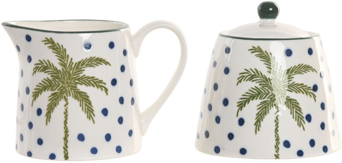 Melk- en Suikerpot Home ESPRIT Blauw Groen Porselein 11 X 7,6 X 7,8 CM 2 Onderdelen