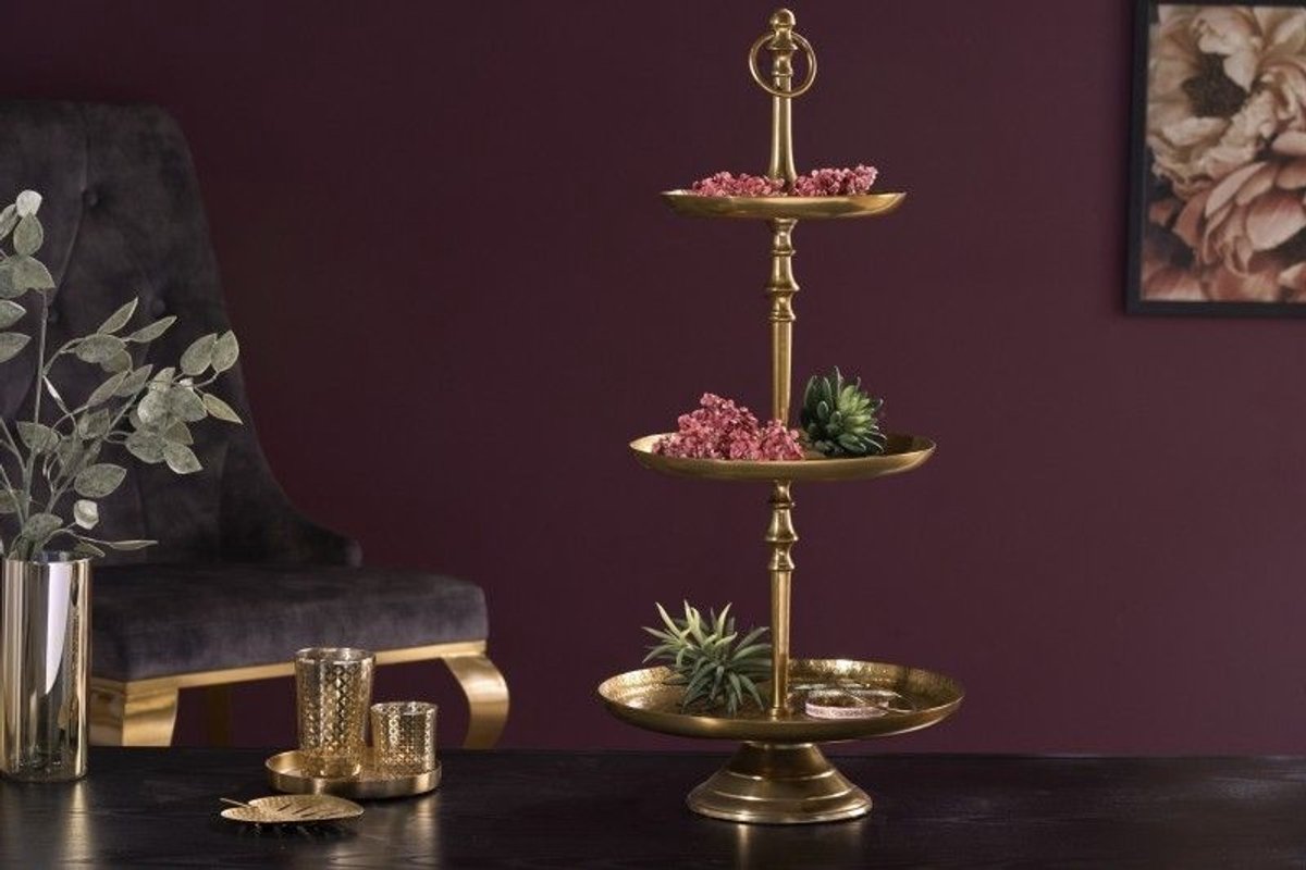 Design taartplateau ORIENT 65cm goud in wild hammer finish met drie niveaus – 41537