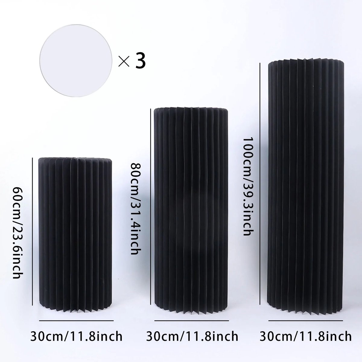 Plantentafel – Bloementafel – Taartplateau – Kerstzuil – Kerstdecoratie – Kerst Accessoire – Papieren cilinder – Opvouwbaar – Decoratie – Versiering – Bruiloft – Tafel – Kerst – Bruiloft – Verjaardag – Feestje – Zwart – Hoogte 60, 80, 100 CM – 3STK