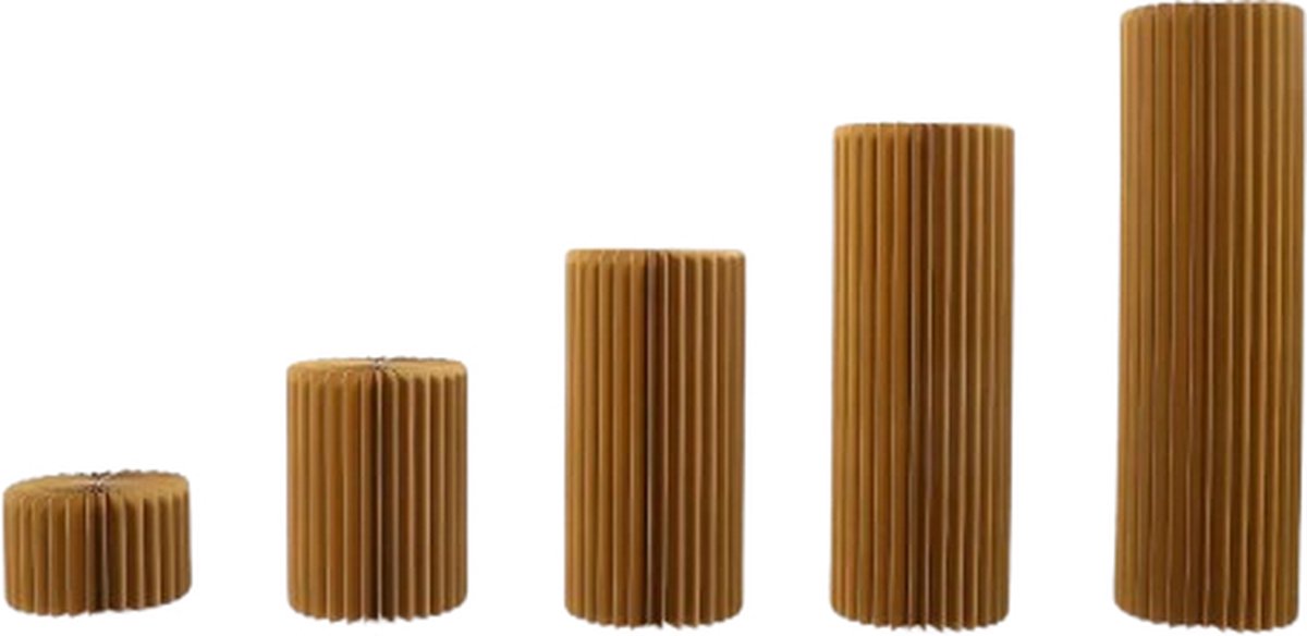 Met hoogtes van 20 cm, 40 cm, 60 cm, 80 cm, en 100 cm biedt deze set verschillende niveau-opties, zodat u een dynamische en gelaagde opstelling kunt creëren. Dit maakt het gemakkelijk om bloemen, taarten, kaarsen, of kerstaccessoires in het middelpunt van de aandacht te plaatsen. Dankzij het opvouwbare ontwerp zijn deze cilinders niet alleen mooi maar ook praktisch: ze zijn eenvoudig op te zetten en weer op te bergen na gebruik, waardoor ze ideaal zijn voor zowel thuisgebruik als voor evenementenlocaties.