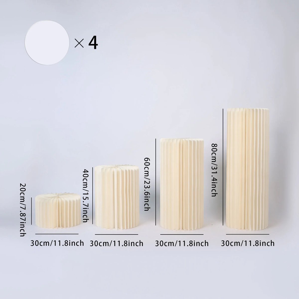 4 x Opvouwbare papieren cilinder-displays (in hoogtes van 20 cm, 40 cm, 60 cm en 80 cm)