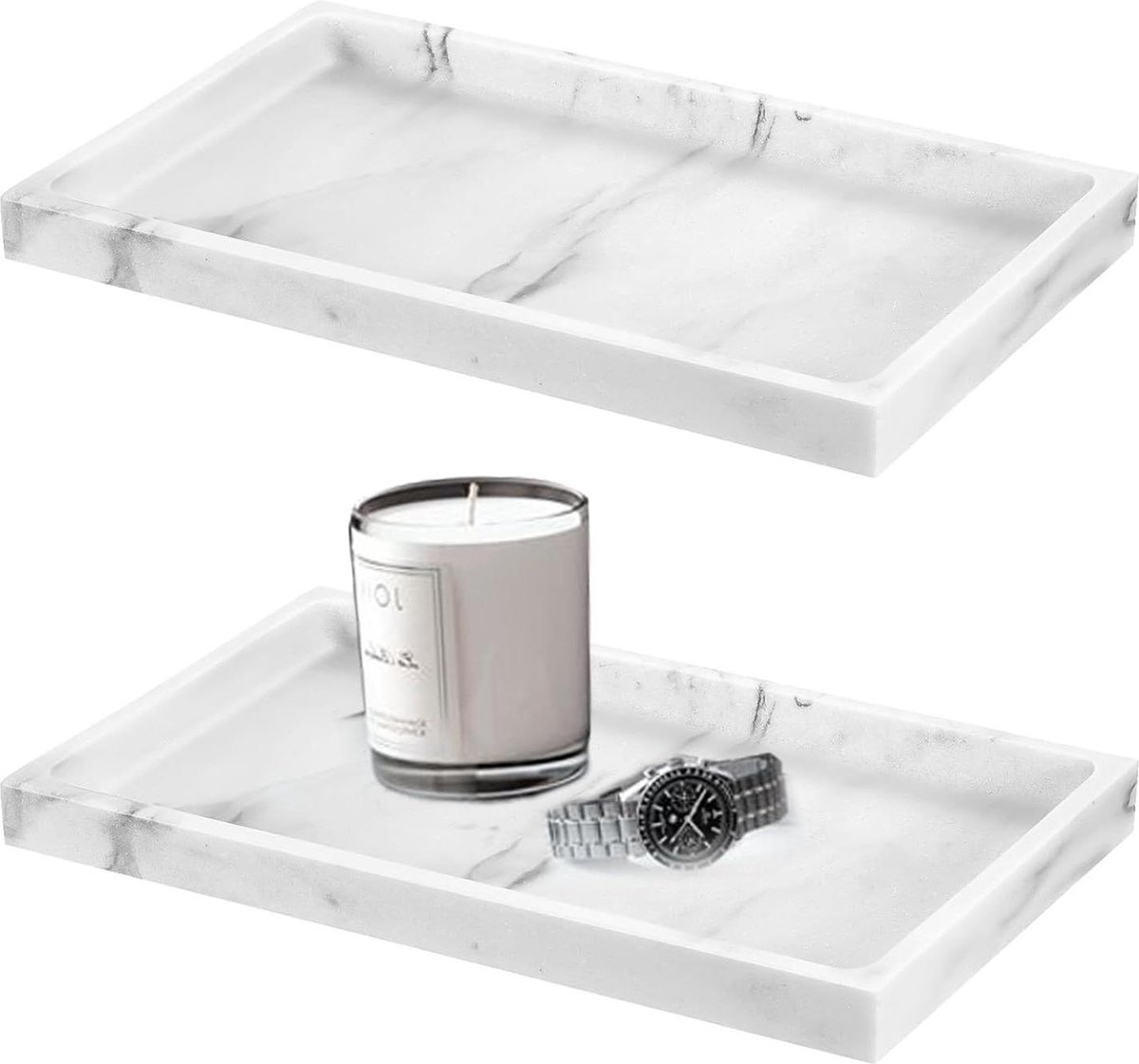Badkamerdienblad marmerpatroon – decoratief sieradendienblad voor doeken, kaarsen en meer | Rechthoekig dienblad (30 x 13 x 2 cm) marble tray