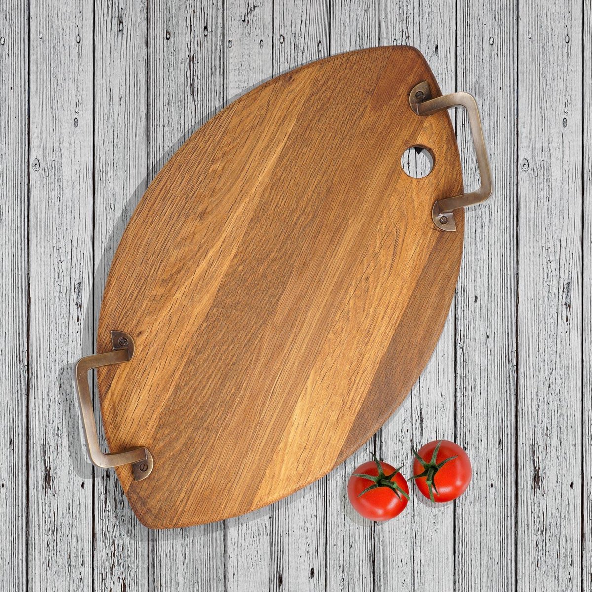 Rico & Plato Nederland Eikenhouten Dienblad - Rond - Houten - Vintage - Rustiek - Bruin - 50cm x 30cm - Kookstore.nl