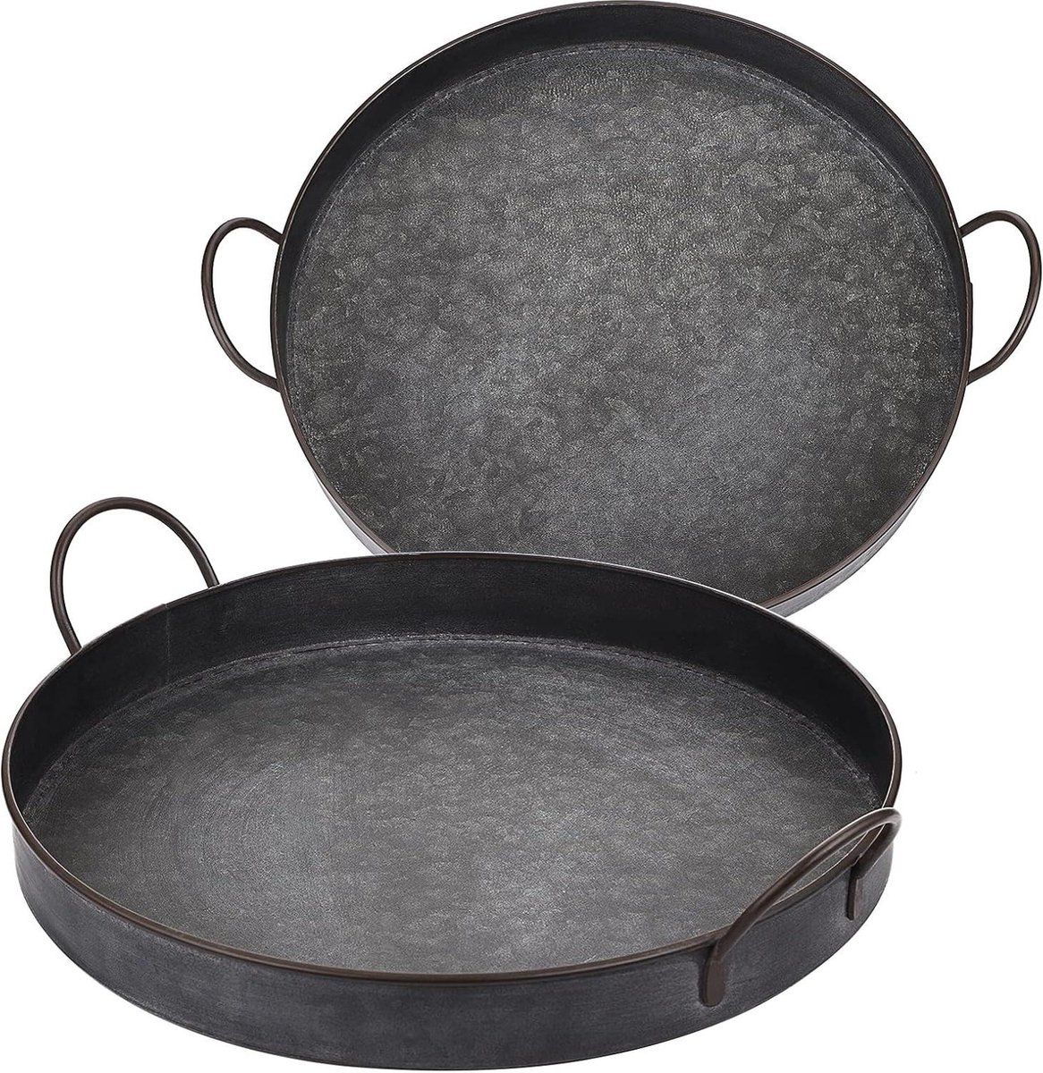 Ronde decoratieve dienbladen met handgrepen – metaal – industrieel boerderij stijl – 30 cm en 25 cm